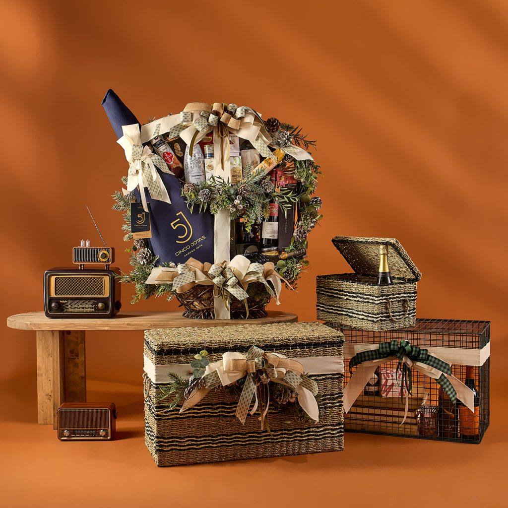 Cada elemento de nuestras cestas y baúles está cuidadosamente elegido para crear una armonía perfecta y dejar huella en quien lo recibe.